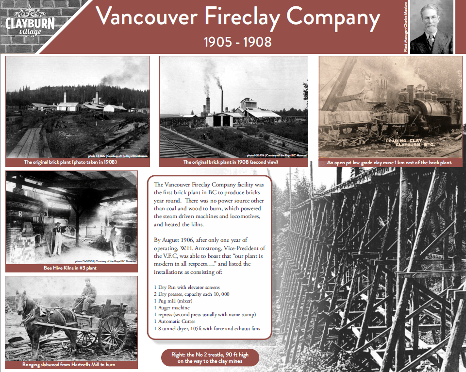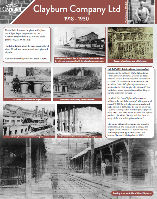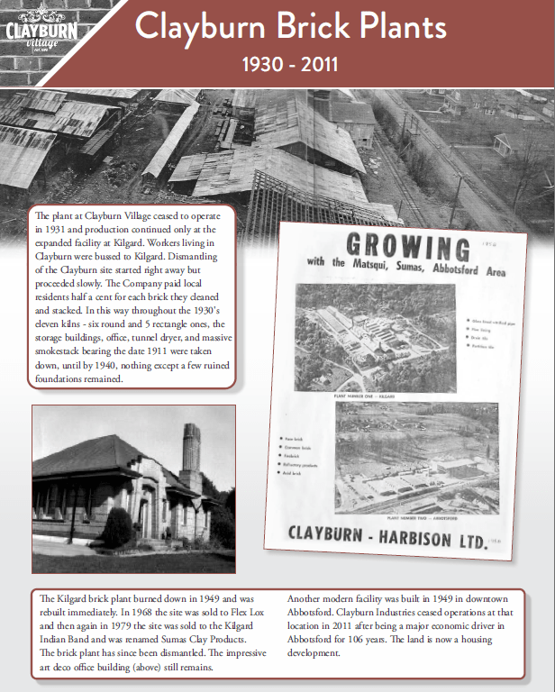 The Clayburn Museum Society commissioned these posters to celebrate and bring increased awareness to the long history of the Clayburn Village and surrounding area. They provided the photos, text, and desired colour scheme to coordinate with existing posters.