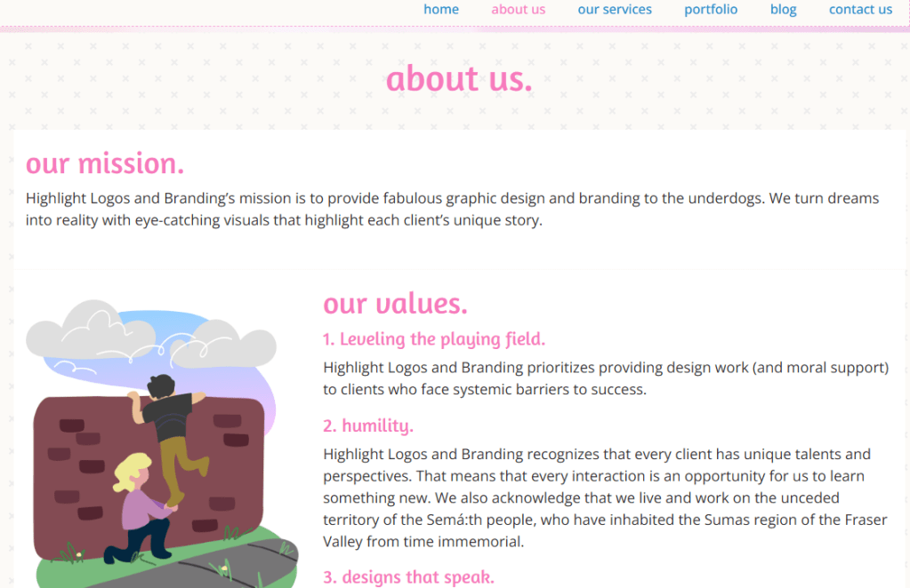 The website was built through WordPress using BoldGrid templates and other add-ons, utilizing warm, inviting colours and textures along with short paragraphs and plenty of white space to ensure an easy reading experience. The main illustrations for the website were commissioned from @jayrettich, a young local queer artist who specializes in comic-style art.